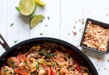 Paella-inspired Spanish Cauliflower Rice with shrimp, chicken and chorizo is healthy...